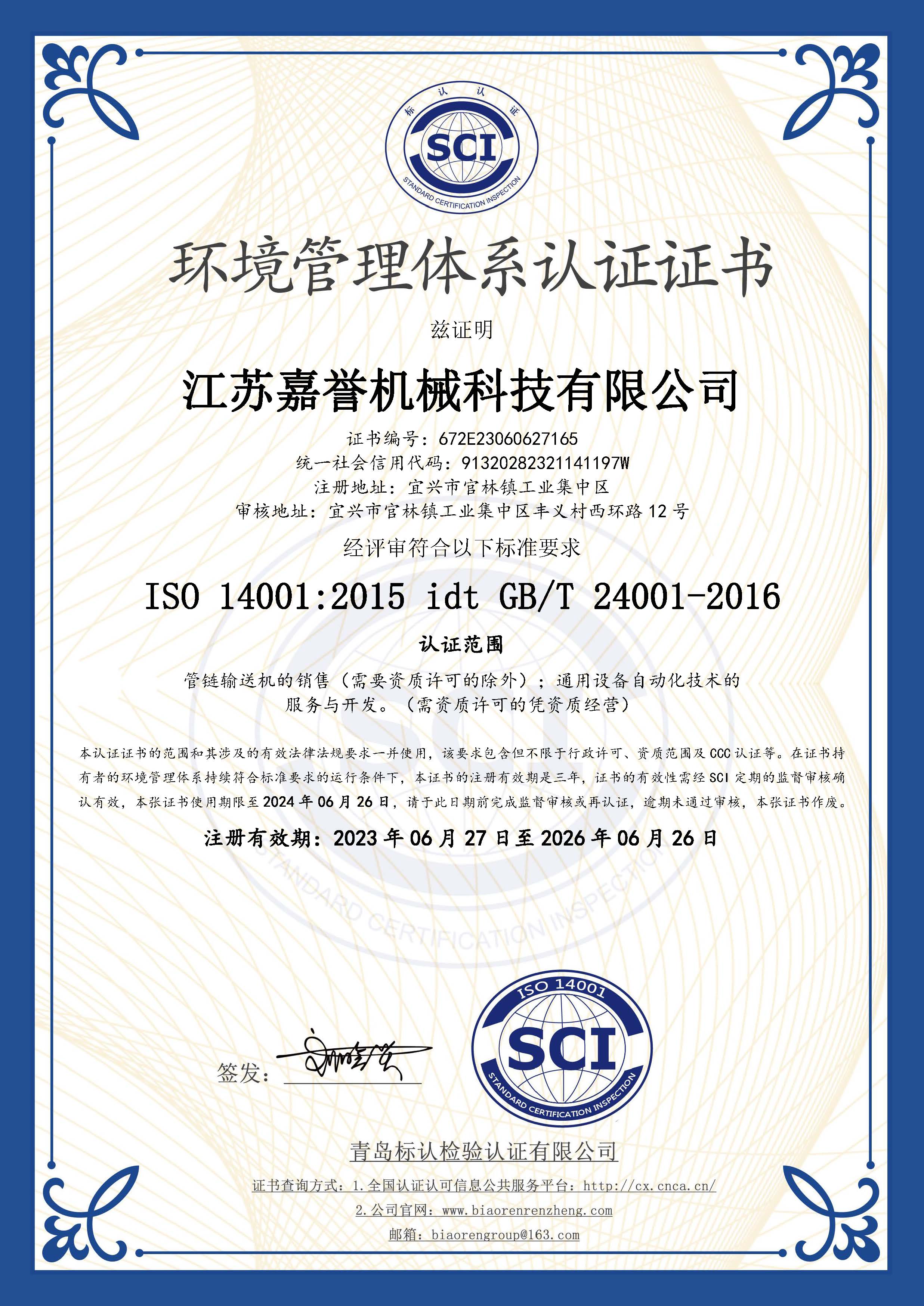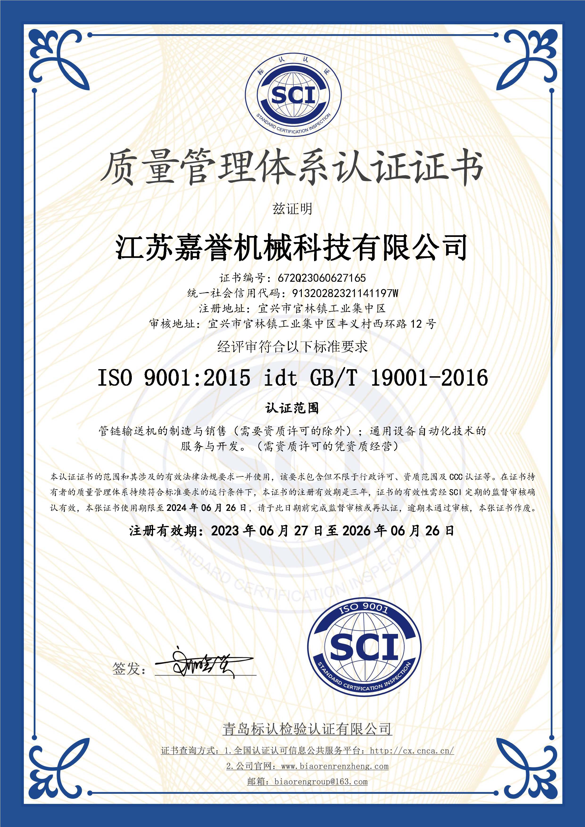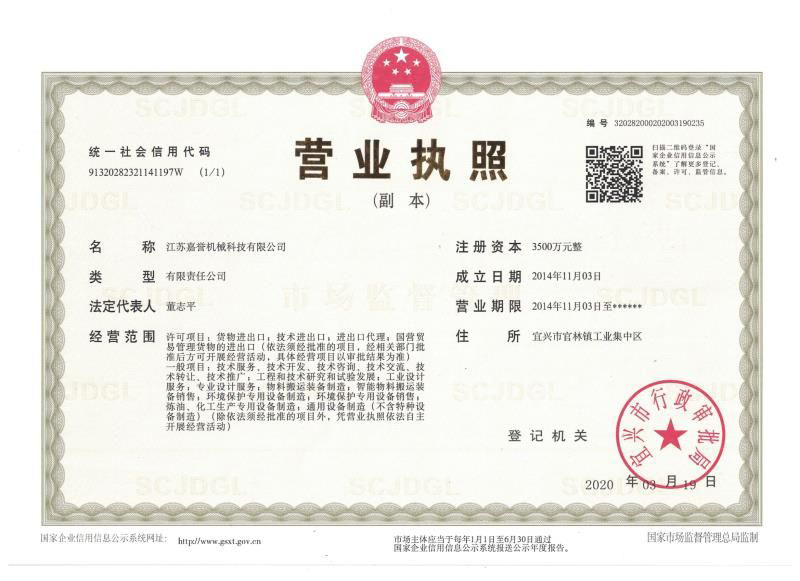 江蘇嘉譽機械科技有限公司座落在富有陶的故鄉、洞的世界、竹的海洋、茶的綠洲、教授之鄉以及全國電纜之鄉的歷史文化名城—宜興市官林鎮。本公司處于滬、寧、杭三角中心,與浙、皖交界,臨靠104國道、滬寧鐵路、寧杭高速,地理位置優越,交通運輸方便。