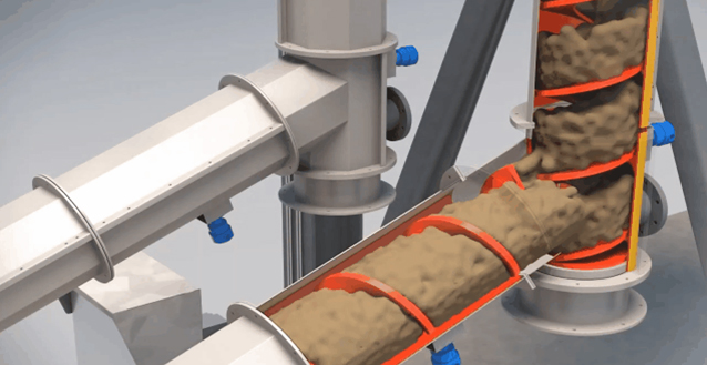 當螺旋體轉動時,進入料槽的物料受到旋轉葉片的方向推力,該推力會隨著葉片的旋轉使物料繞軸轉動,從而實現(xiàn)輸送物料的目的。螺旋輸送可與各種規(guī)格的擠出機、高速混合機配套使用,從而實現(xiàn)加料自動化。